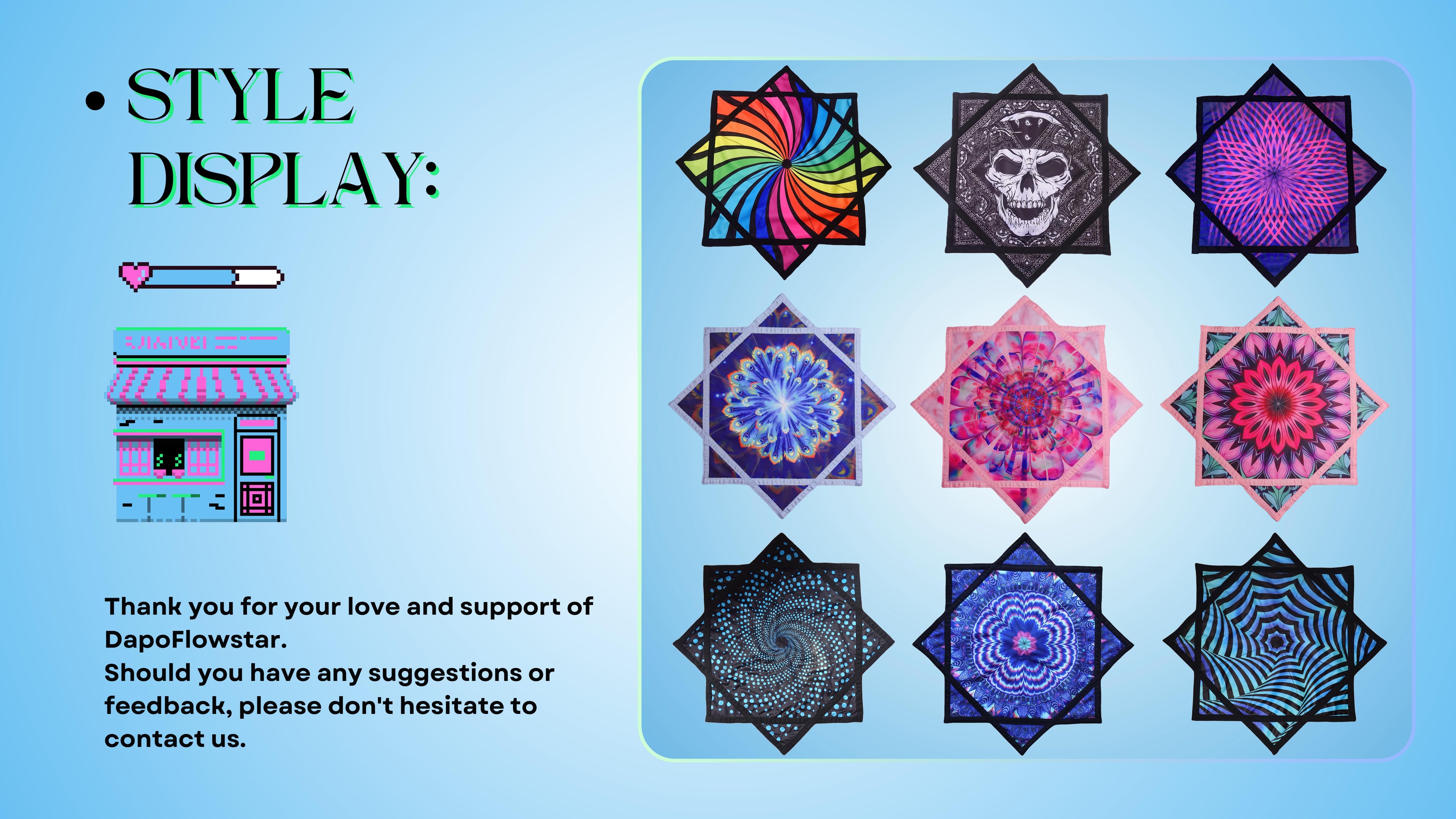 FlowStar (UV Reactive) Spinning Cloth Easy to Rotate Sided Print Double Stitched Flow Toy Fingertip Dapo Star (R05-Style6)